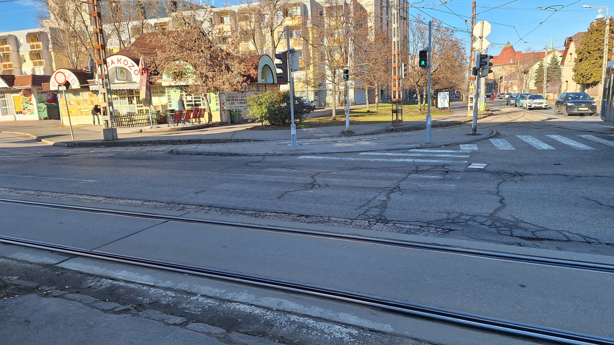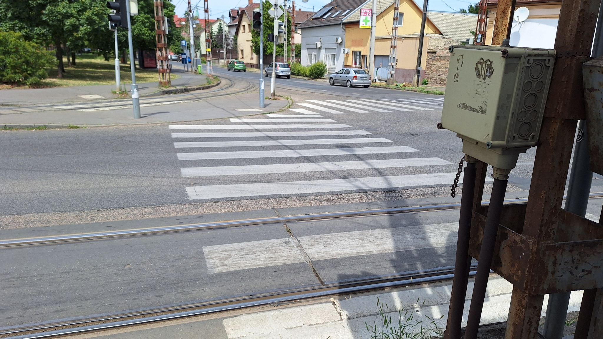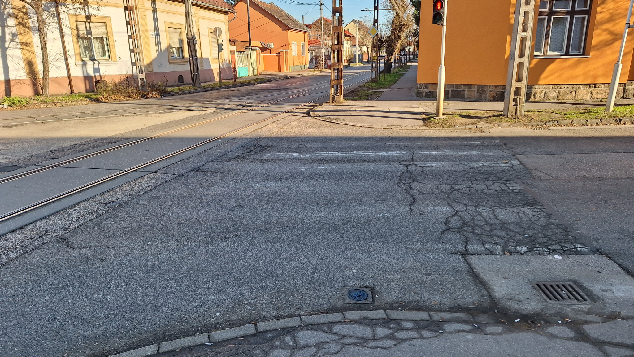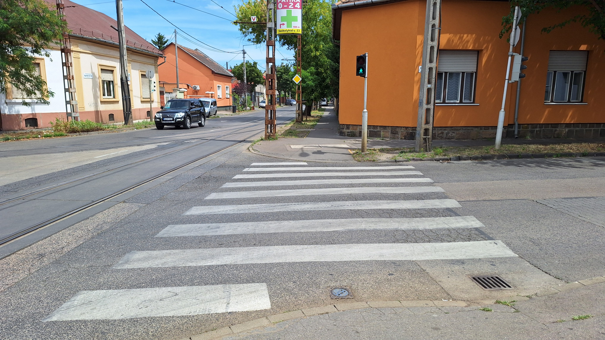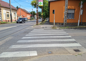 A Nagysándor József utca és Török Flóris utca kereszteződésében lekoptak a zebrák.