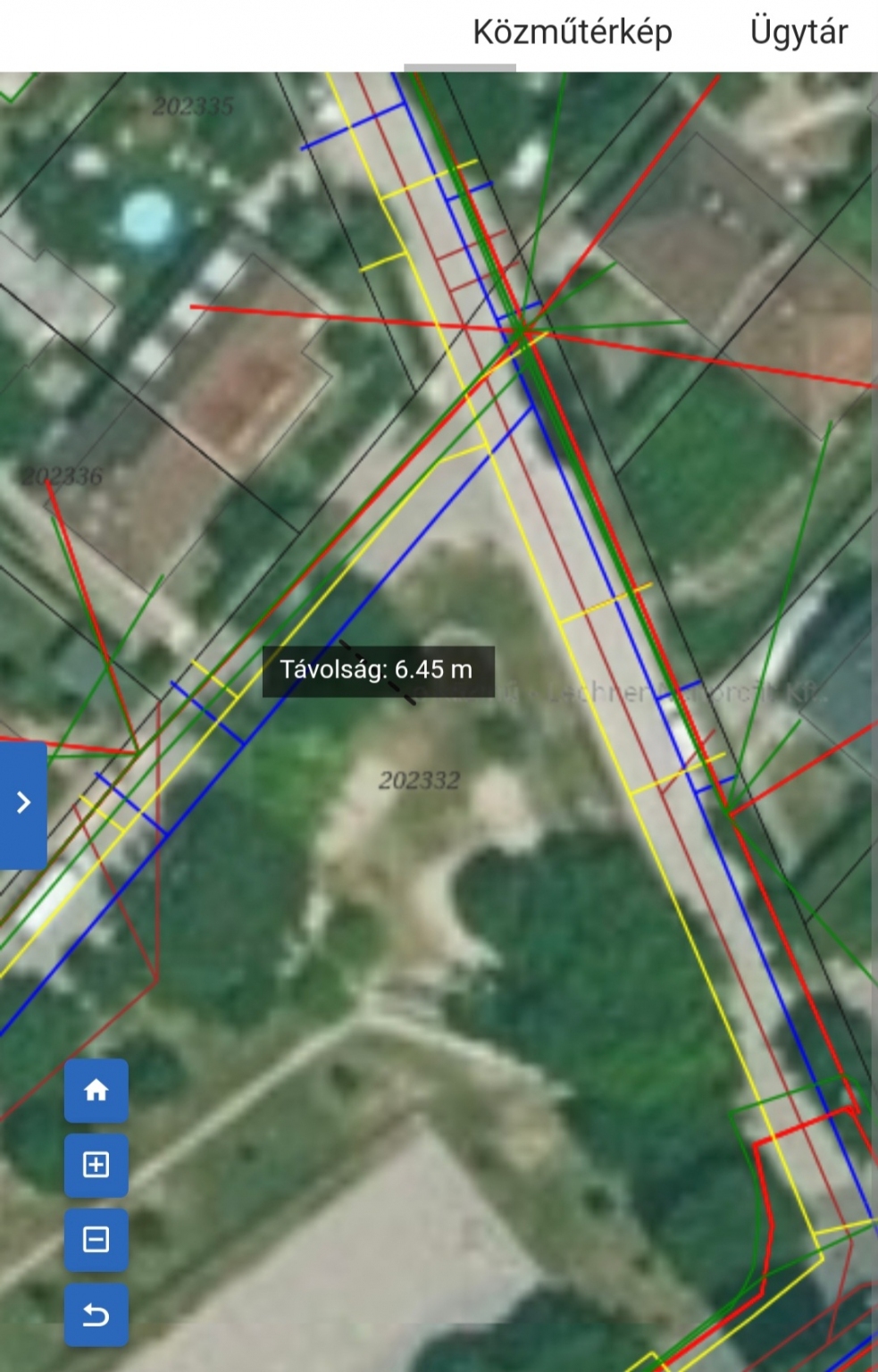 A játszótérrel határos utakon húzódik a vízművek NA80 körvezetéke (elosztóvezetéke), ezek közül ráadásul az egyik utca hosszú oldala a játszótér kerítésével párhuzamos. Erre kellene az ábrán jelölt helyen kb. 6-7 méter hosszúságú NA20 bekötővezetékkel beállni a játszóra (az úttest megbontása nélkül), NA13 vagy NA20 vízmérő létesítésével.