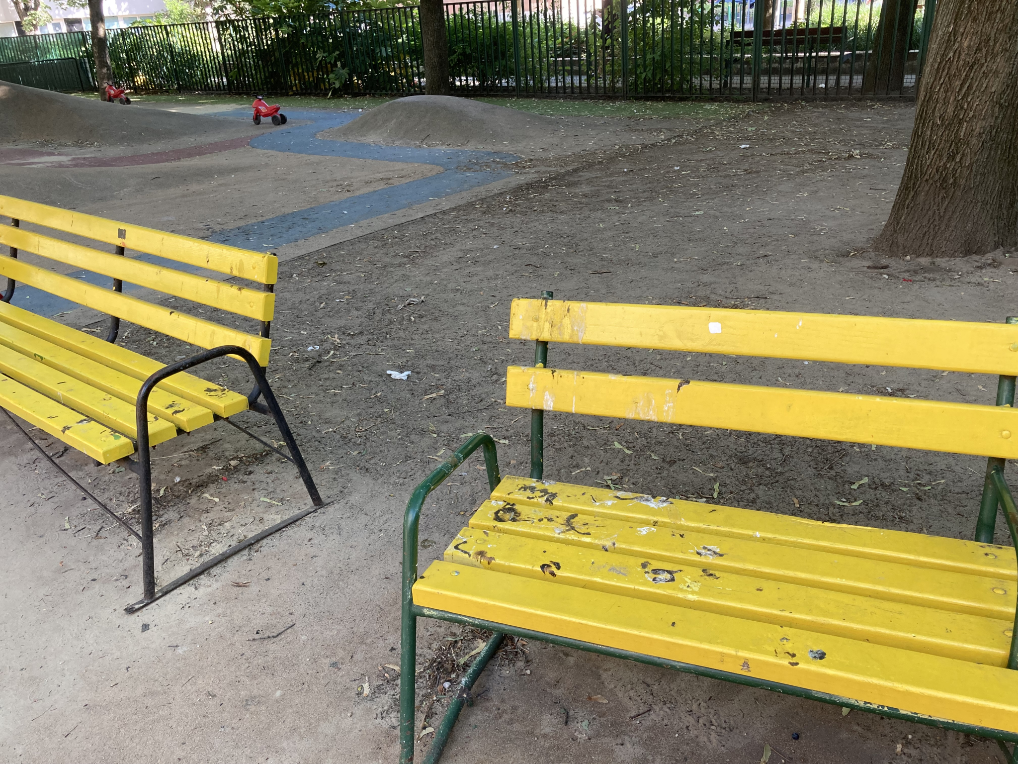 A Wein játszótéren a játszóeszközöket állandóan madárürülék szennyezi. A fákon élő madarak fészkét nem távolították el a fészkelési idő előtt, így ez a probléma egész évben marad.
