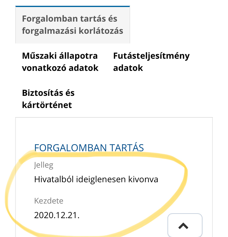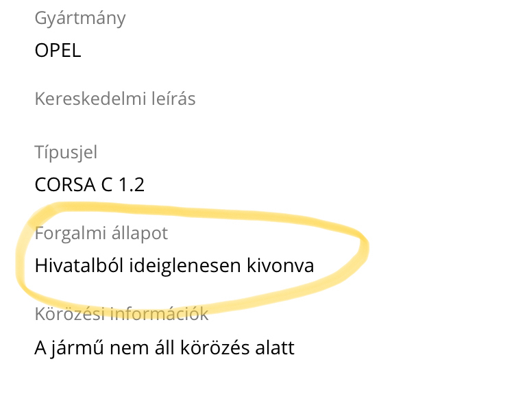 Hivatalból forgalomból kivont a státusza.