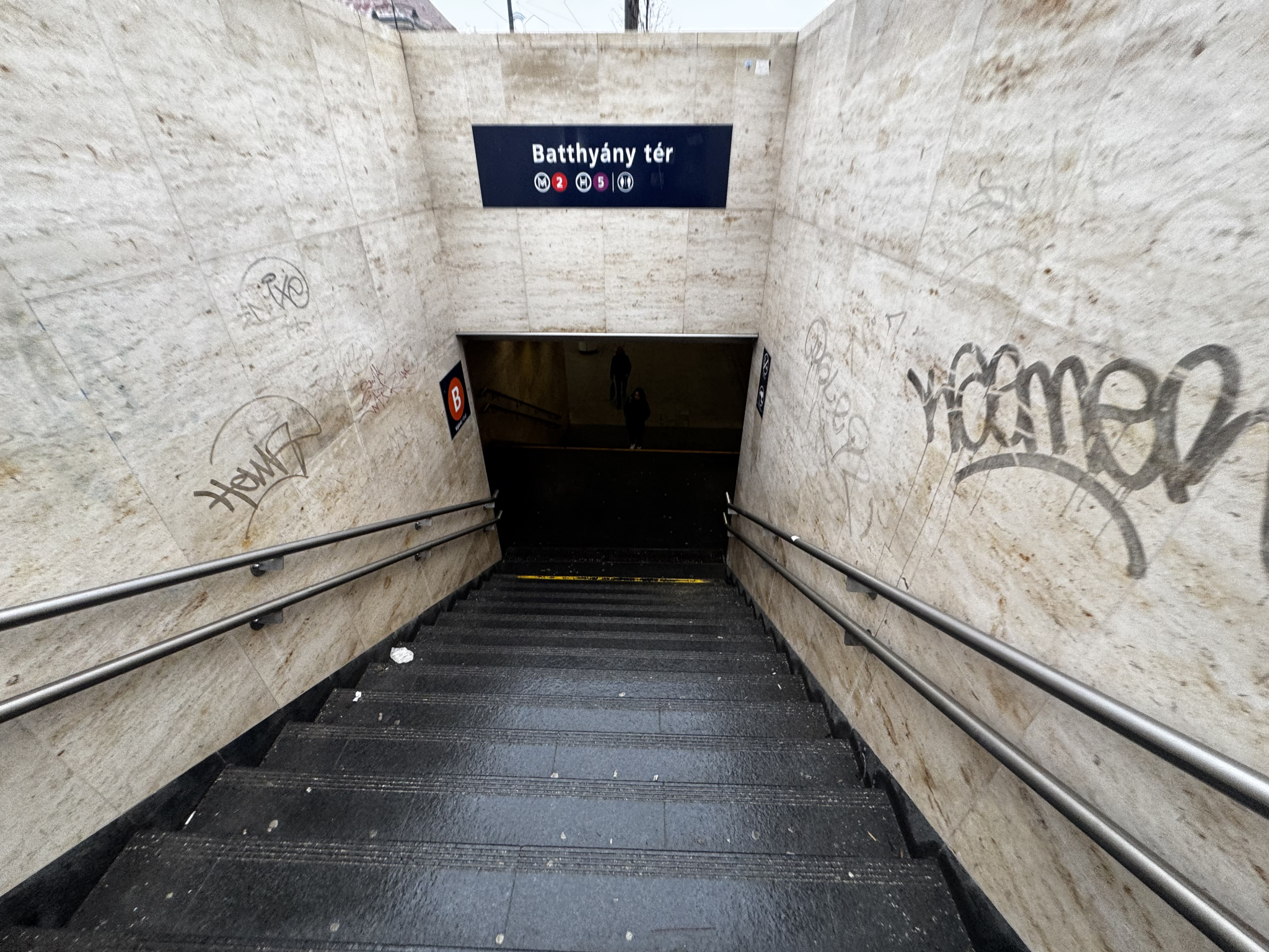 A Batthyány téri aluljáró több lejárata rongált, graffitis. A lenti részen rendkívül koszos a mennyezet. Az oszlopok és a falazat több helyen rongált, graffitis, matricás, régi, félig leszaggatott tájékoztató anyagok vannak a falon.