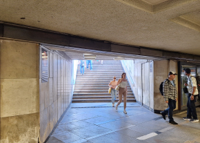 Ez így van a Corvinnál, vagy a Nyugati aluljáróban most is. Itt viszont, csak a lépcsők oldalán, kicsiben szerepel ez az információ.