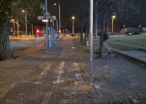 A XIX. Ker. Mátyás király utca 3 számnál (Shopmark előtt) az Ady Endre út felől az Üllői út felé tartó irányból hiányzik a kijelölt gyalog-átkelő hely tábla.