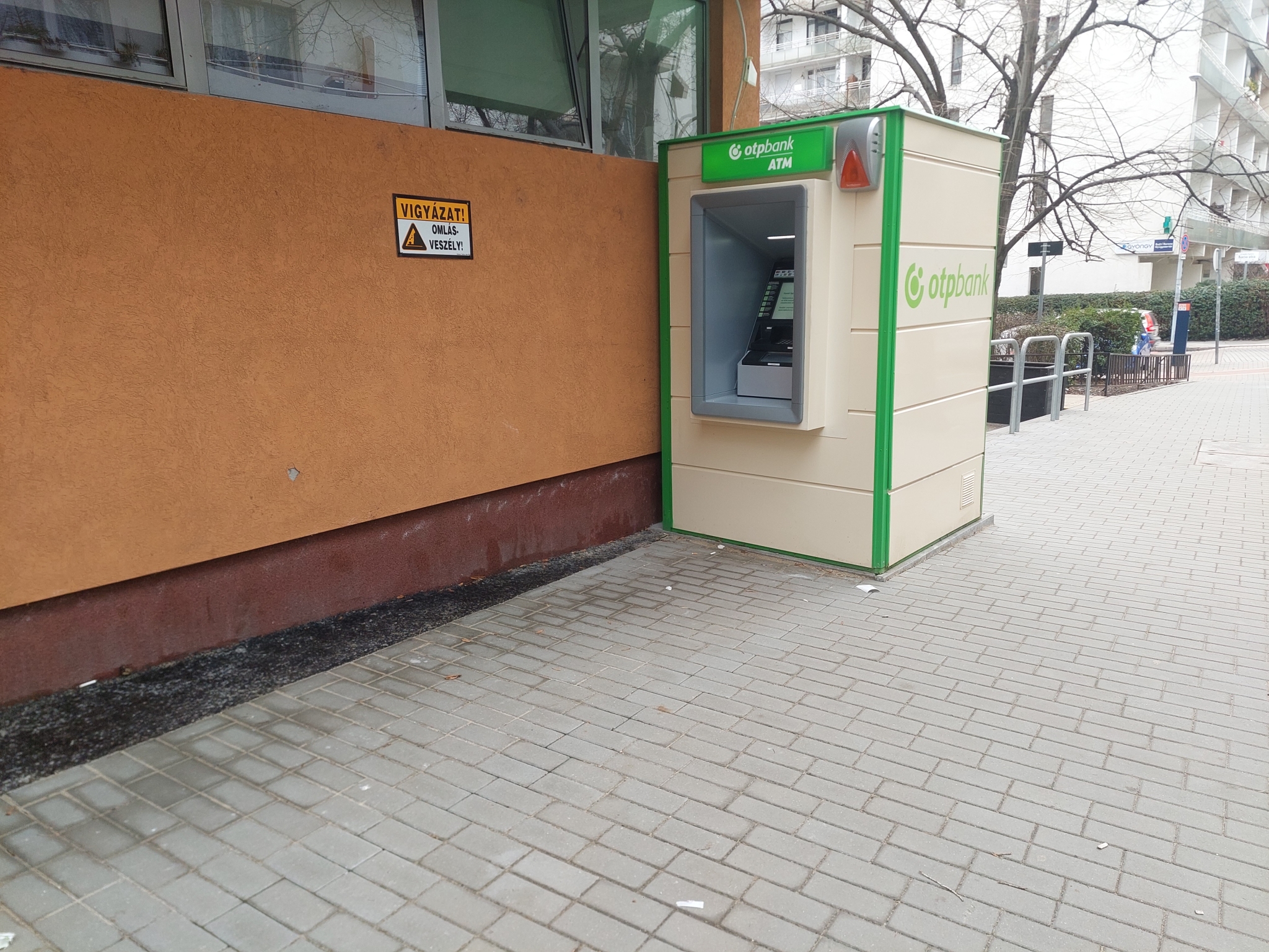 Egyenetlen (homorú) a járda az új OTP automatánál, így kerekesszékkel nem megközelíthető.