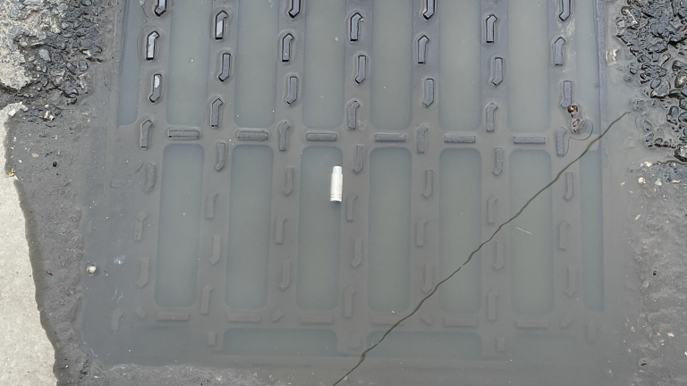 Egy eldugult lefolyó az Erzsébet királyné útján.