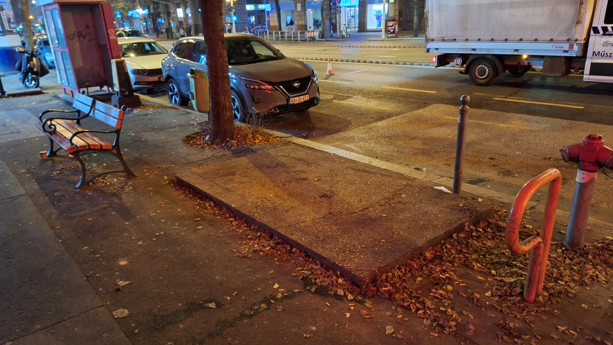 A Teréz körút 25. előtt fekszik egy funkciótlan betontapazat. A Google Maps alapján valaha egy pad állt rajta, más funciót 2009 óta nem töltött be. Esetleg el lehetne ezt bontani?