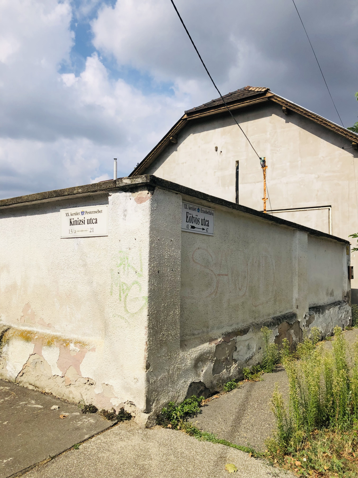 A Kinizsi és Eötvös utca sarkán hiányzik egy utcatábla.