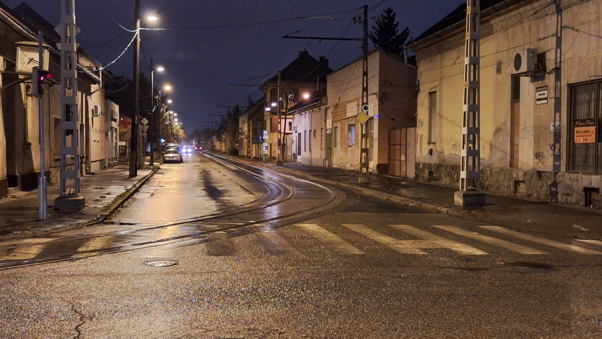 A Jókai Mór és Nagysándor József utca kereszteződésében szinte teljesen láthatatlanná vált a zebra felfestése. Ugyanez igaz a megállás helyét jelző vonalra is.