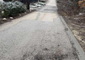 "II. Bogár utcában, a Mák utca sarkánál 2 útbesüllyedés is van. Sajnos a kép nem jól adja vissza, ezért be is karikáztam, főleg az egyik elég mély."