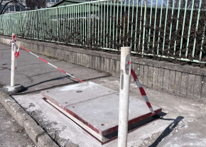 Tönkrement telekom szekrény fedlapjai hiányosak , repedezettek környezete elhanyagolt .