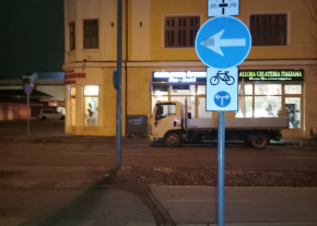 A XIX. Ker. Kossuth tér 24 szám melletti parkolón átvezető út végén a forgalmi rend miatt, mivel a behajtani tilos tábla, onnan nem észlelhető, ezért balra kötelező haladási irány tábla van kihelyezve, viszont így nem lehet jobbra kanyarodni a kerékpár útra se. Hogy a forgalmi rend ne boruljon fel az utasítást adó táblát át lehet helyezni az oszlopra? Mert sajnos itt a kerékpáros kiegészítő tábla nem opció, hiszen azzal az autó forgalommal szembe is beengedné a kerekpárosokat ami nem lenne jó.