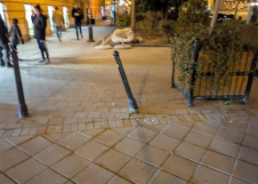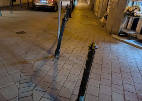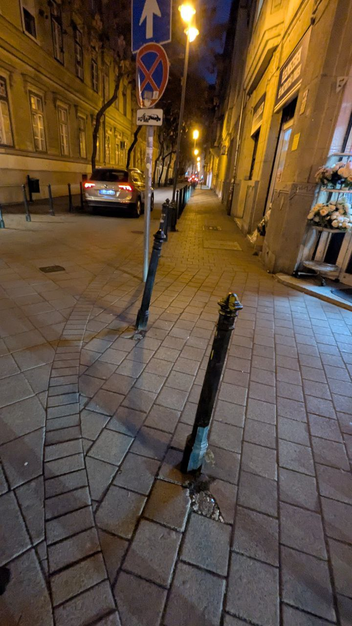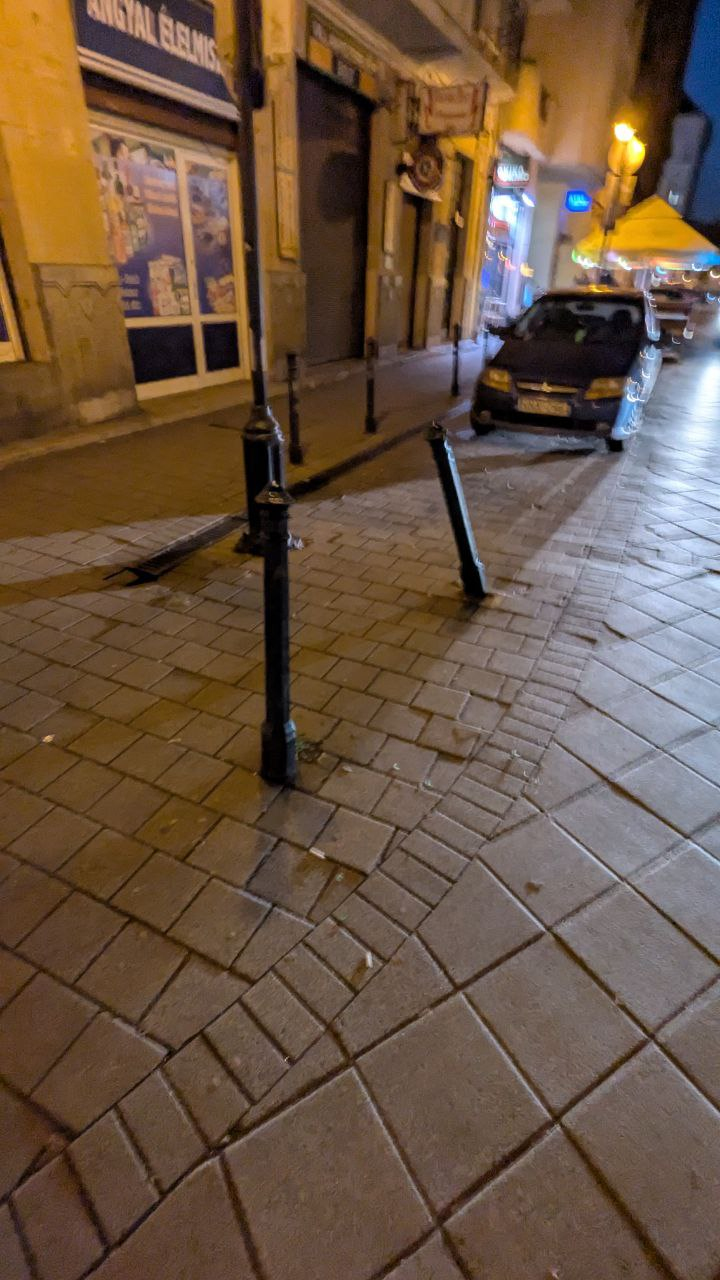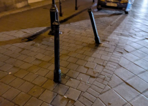 Kidöntött poller, hiányzó pollerek. Kérem javítsák. Köszönöm.