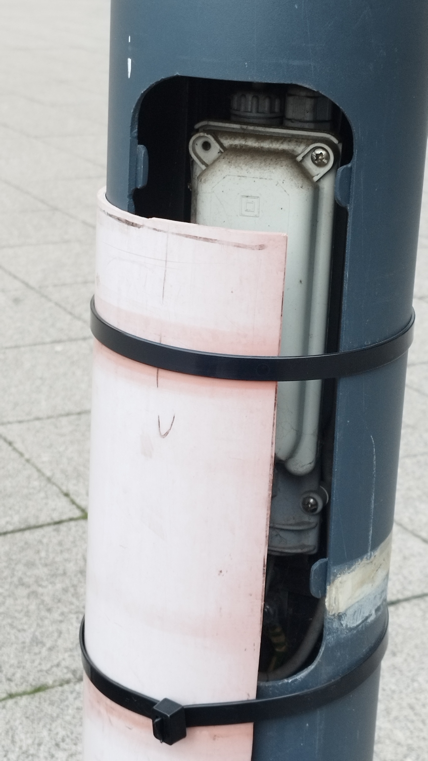 Kérem a két lámpaoszlop elektromos elosztódobozát biztonságosan lezárni.