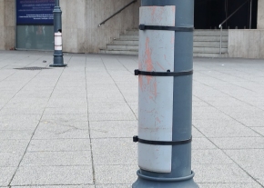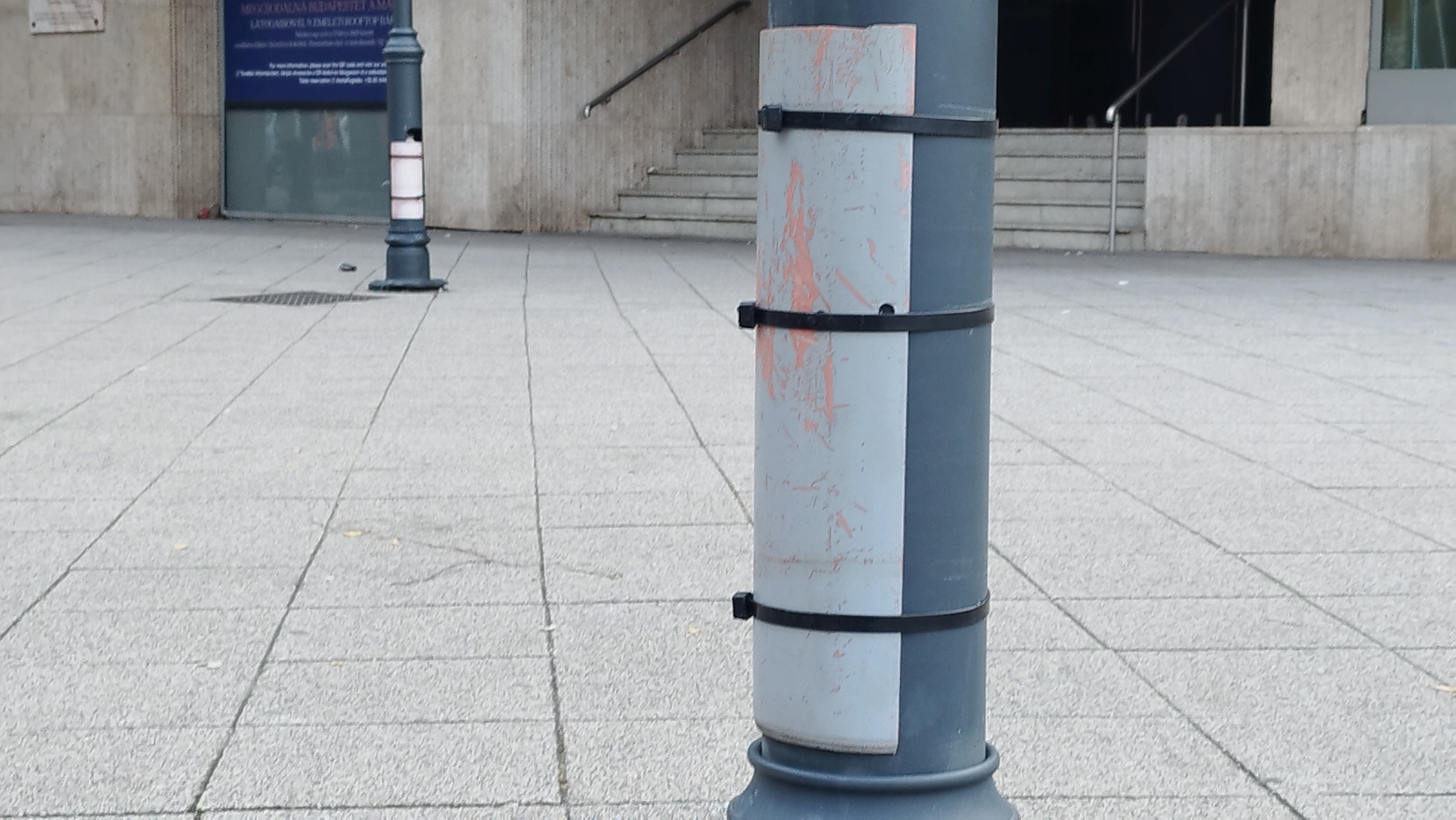 „A két lámpaajtó valamilyen kókány módon, a felelős által is ismerten ideiglenesen van takarva. A színe is nyilván azért üt el ennyire egy világörökségi területen, hogy jelezze: ez nincsen kész. Az egyik ráadásul a kókányságából kifolyólag lecsúszott, újra nyitva van.”