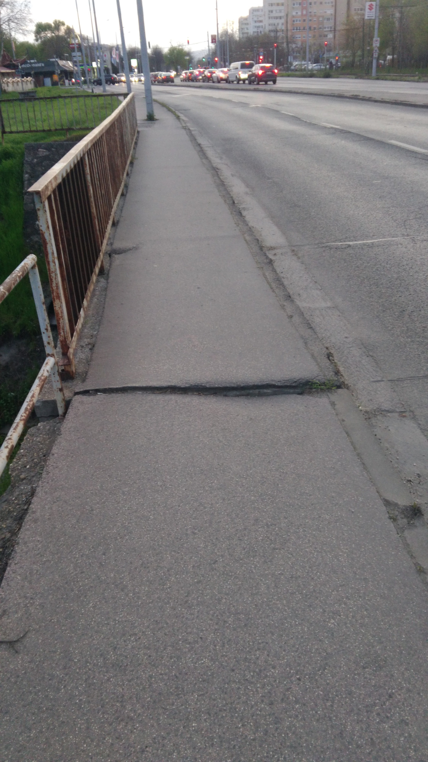 Az alábbi lukat a járdán a Rákos-patak feletti hídon fotóztam, kérem az illetékest, hogy szüntessék meg!