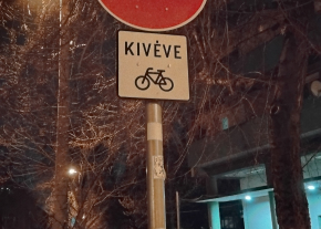 A Gyarmat utca - Nagy Lajos király útja sarkán a behajtani tilos lekopott.
