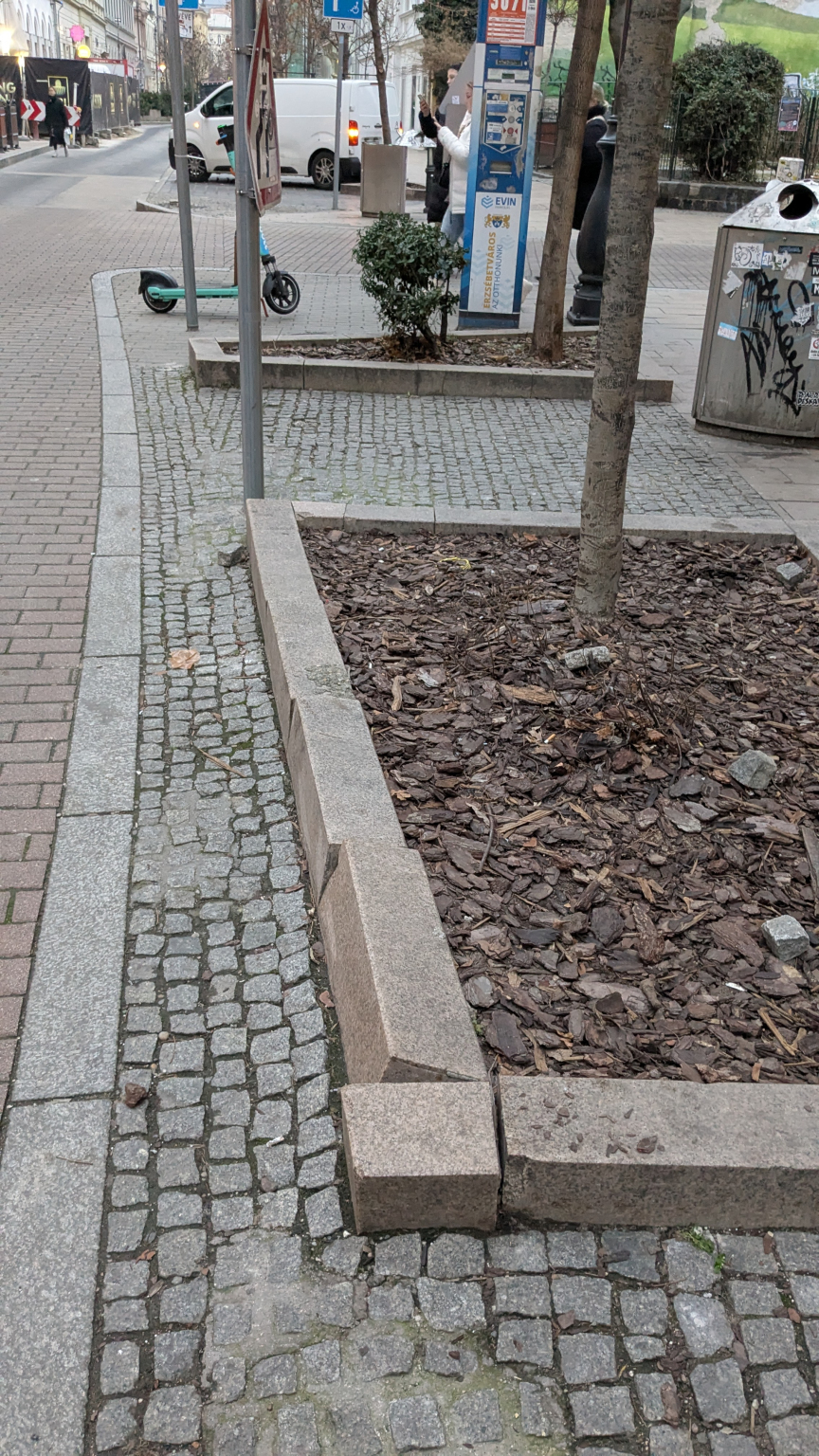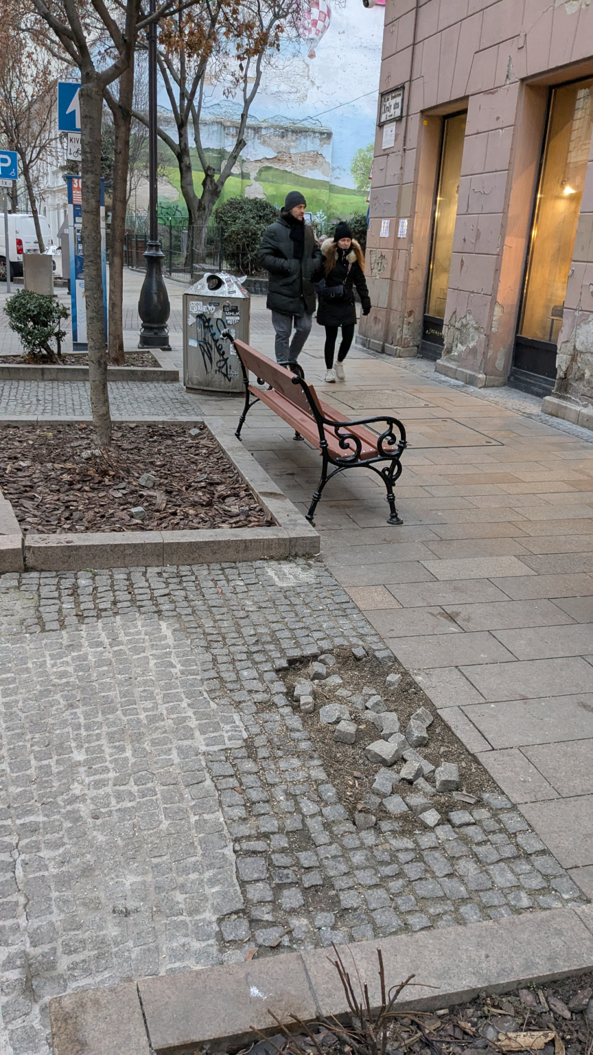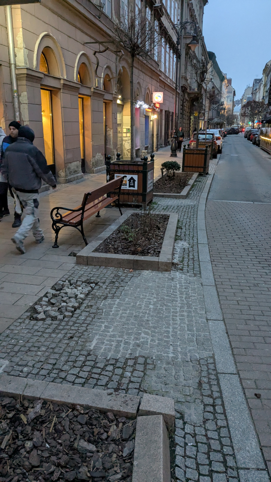 A 2025. január 21-én beküldött fotókon - a bejelentés eredeti címétől eltérően - a Király u. 21. sz. előtti burkolat látható. A terület Budapest Főváros VII. kerület Erzsébetv...