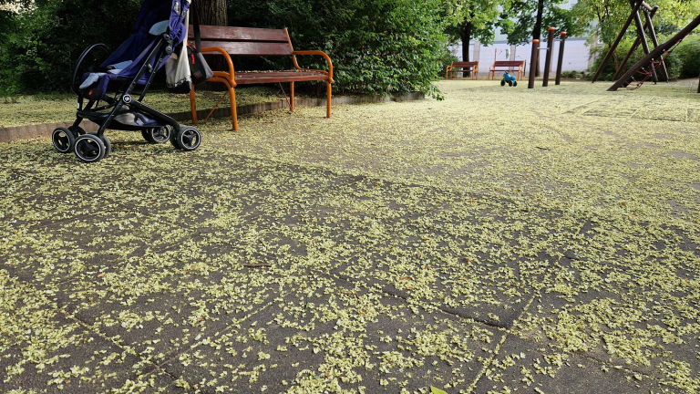 A zuglói Nagybecskerek téri játszótéren a japán akác teleszórja virágaival a játszóteret, ami rengeteg méhet vonz magával. Naponta több gyereket csípnek meg a méhek, szinte alig lehet mozogni a játszótéren. Persze a virághullás folyamatos, de ebben az időszakban biztosan sokat segítene legalább egy napi egyszeri (nyitás előtti?) takarítás.