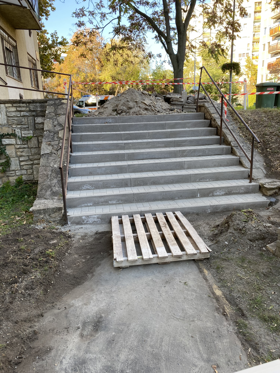 A lépcsőfokok sok helyen billegnek ,mozognak és kivannak törve.