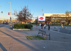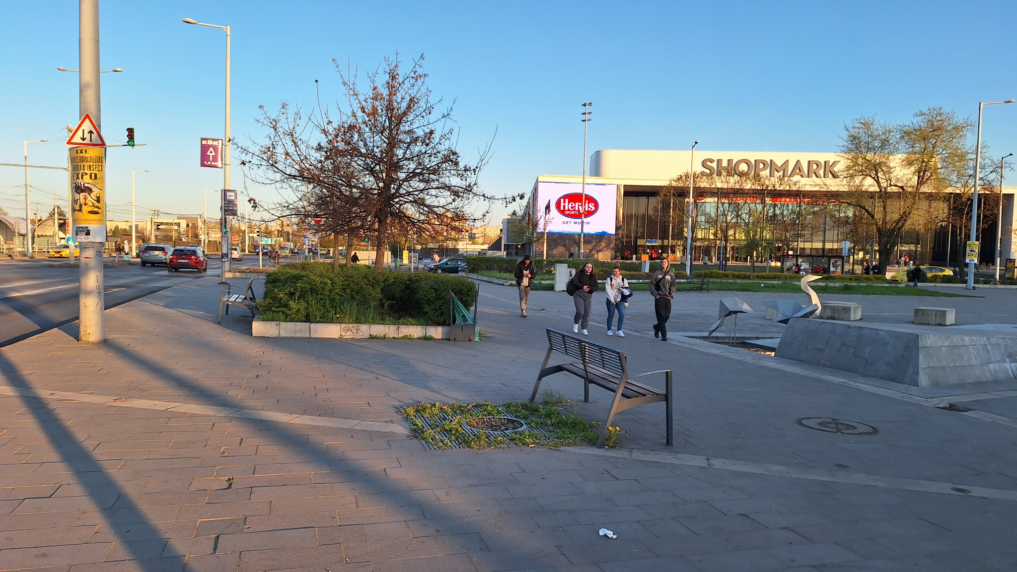 A Határ úton lévő téren, az egyik pad mögött üresen áll egy fahely.