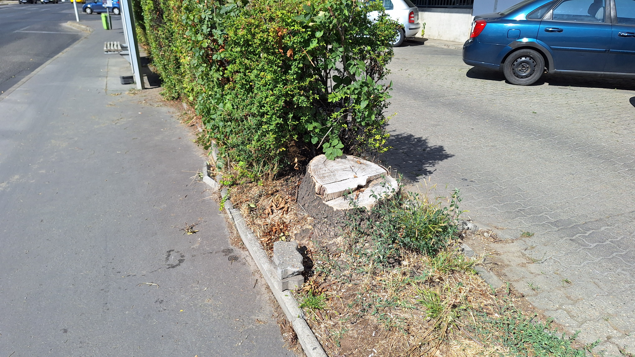 A Váci út 19. előtt áll egy kiszáradt fa.