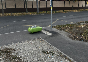 Az FKF zöldhulladékot tartalmazó zsákjai hetek óta gyűlnek az úttest és járda közötti zöldfelületen, ahonnan nem kerülnek elszállításra és már bűzölögnek.