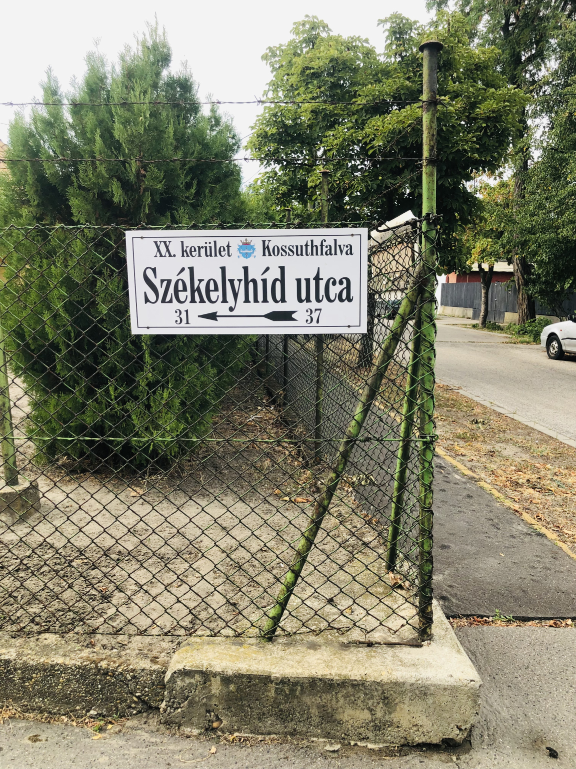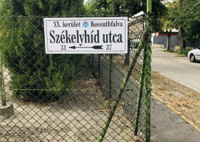 Megrongálódott utcanév-tábla