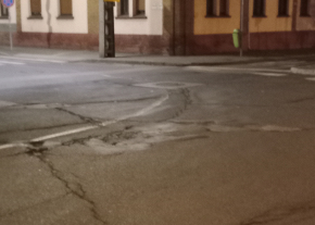 A XX. Ker. Szent Imre herceg utca - Kossuth Lajos utca keresztrződésében a kijelölt gyalogos-átkelőhely útburkolati jel, illetve mivel a kanyar ívet folyton levágják a záróvonal is lekopott teljesen. Kérem a pótlásukat.