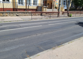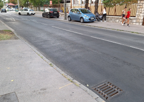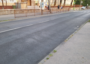 A 123-as busz Temesvár utca / Mártírok útja megállójában nagy mértékben felgyűrődött az aszfalt.