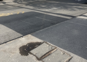 A villamosmegállóban az aknafedél lötyög, kérem javítsák meg.