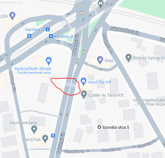 Ma reggel viszont baleset történt: A Tétényi út 3. felőli oldalról szerettem volna átkelni a zebrán. A Bartók/Karolina felől éppen zöldet kaptak az autósok és nagy sebességgel, két sávban közeledtek. Kb. 10-12 autó lassítás nélkül haladt át a zebrán, miközben én a zebra szélé várakoztam átkelésre. Ekkor a szélső sávban egy autó megállt. A belső sávban továbbra is hagy tempóban, lassítás nélkül áthaladtak az autók, a szélső sávban az álló autó mögül 2-3 autós bevágott a belső sávba és elszáguldott. Ekkor a szélső sávban érkező autó fékezés nélkül belerohant a zebránál álló autóba, melyet rátolt a zebrára. Ezt követően a többi autós, busz, dudálva kikerülte a balesetet szenvedő autókat és továbbhaladtak.