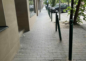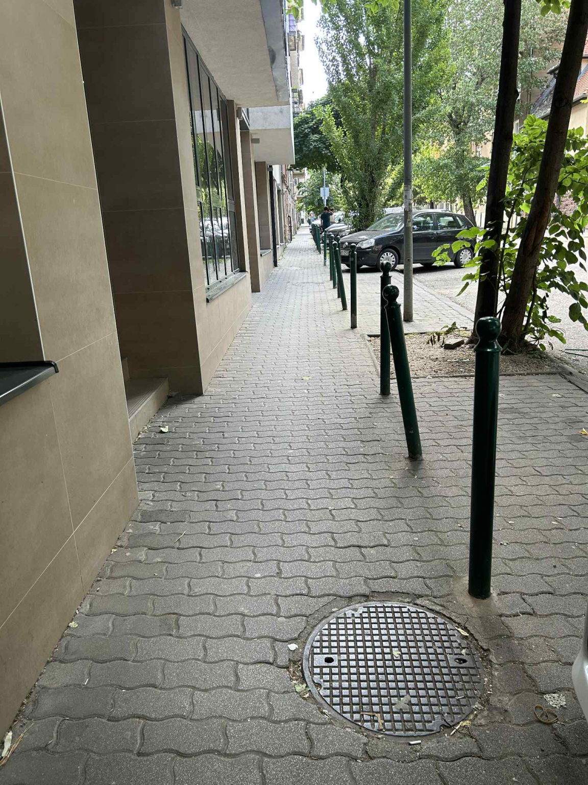 Budapest, 12. Kerület, Tartsay Vilmos utca 14 előtt: Az oszlopot eléggé veszélyesen vágták ki, éles, szúrós fémrészt hagytak maguk után. Balesetveszélyes!