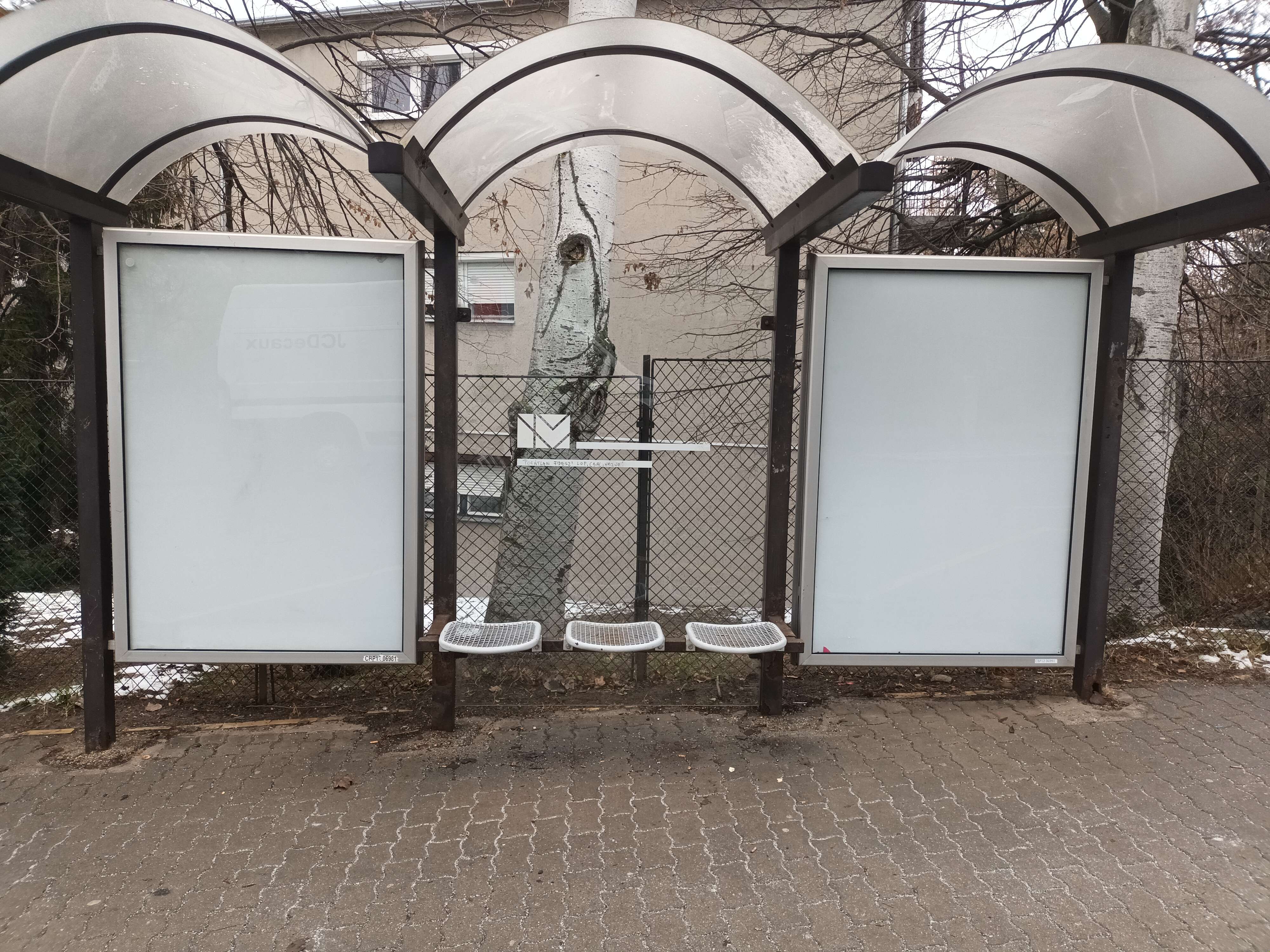 „Most néztem, nem is figyeltem hogy tévesen jeleztek vissza. A másik irányú megállóba cserélték csak az ülőkét. Itt még ugyanúgy rozsdás.