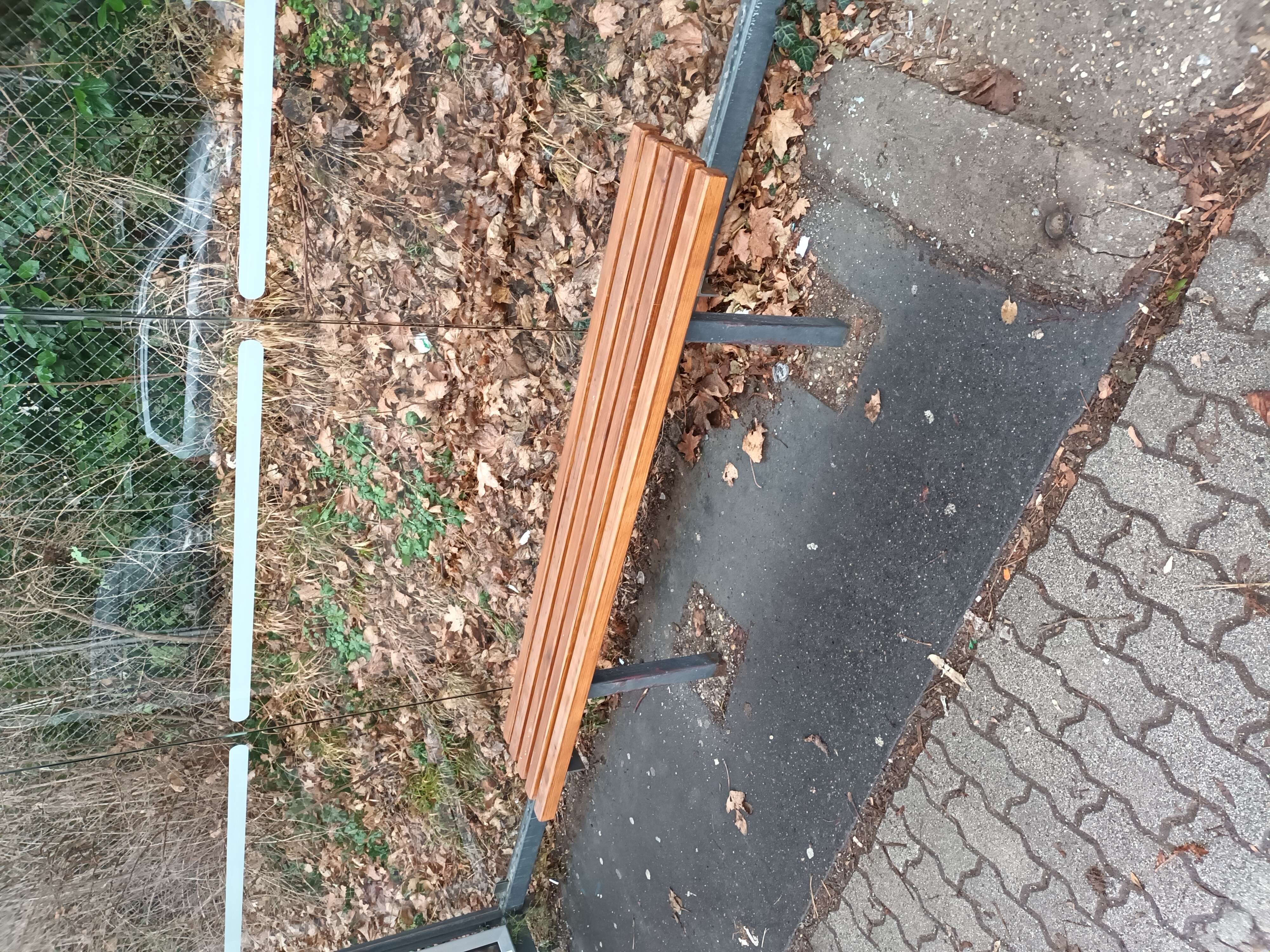 A Tamási Áron utcai (Széll Kálmán tér irányú) buszmegálló padja középen teljesen lekopott.