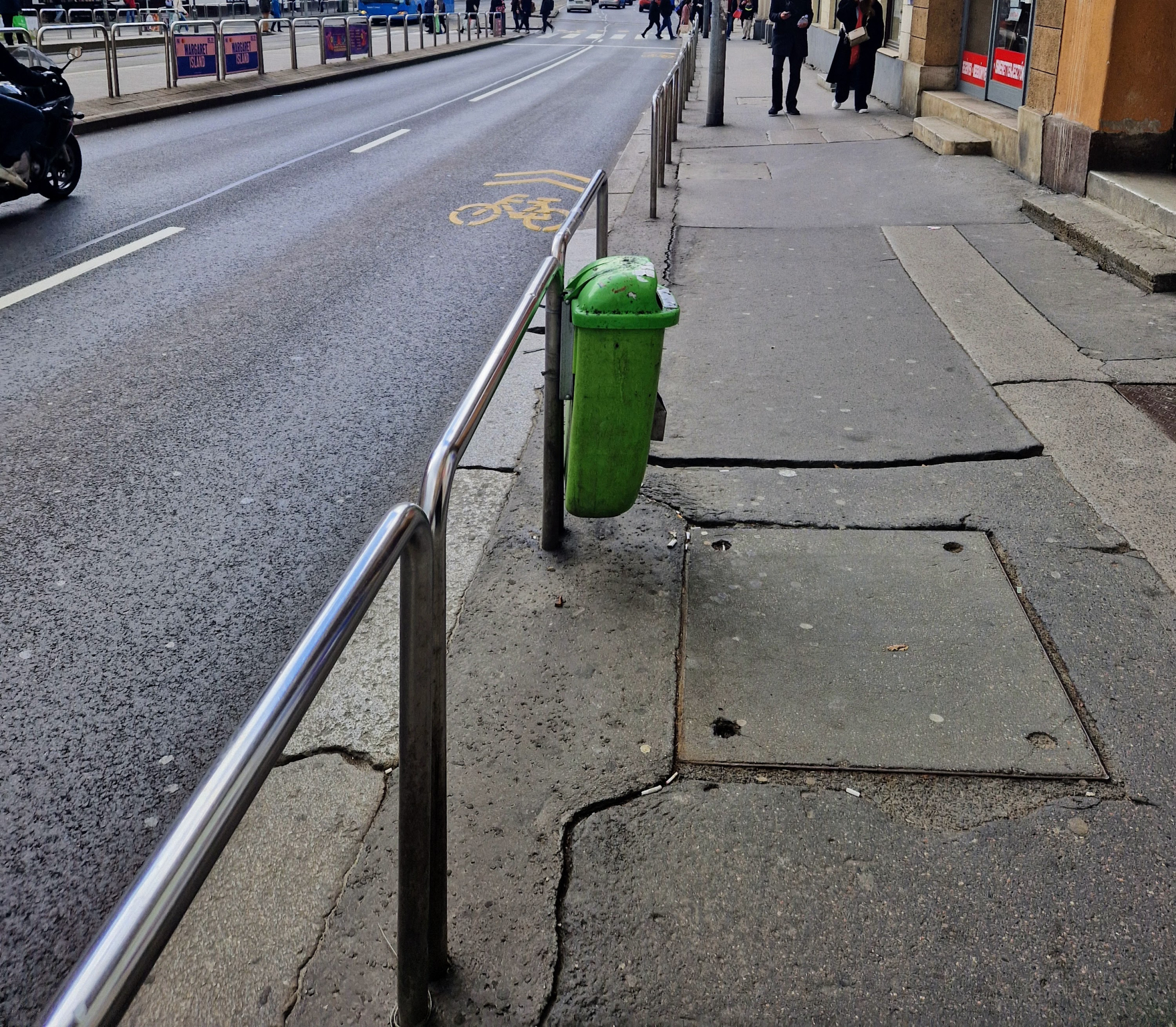 Kiszakadtak a járda védő oszlopok a Margit körúton