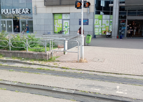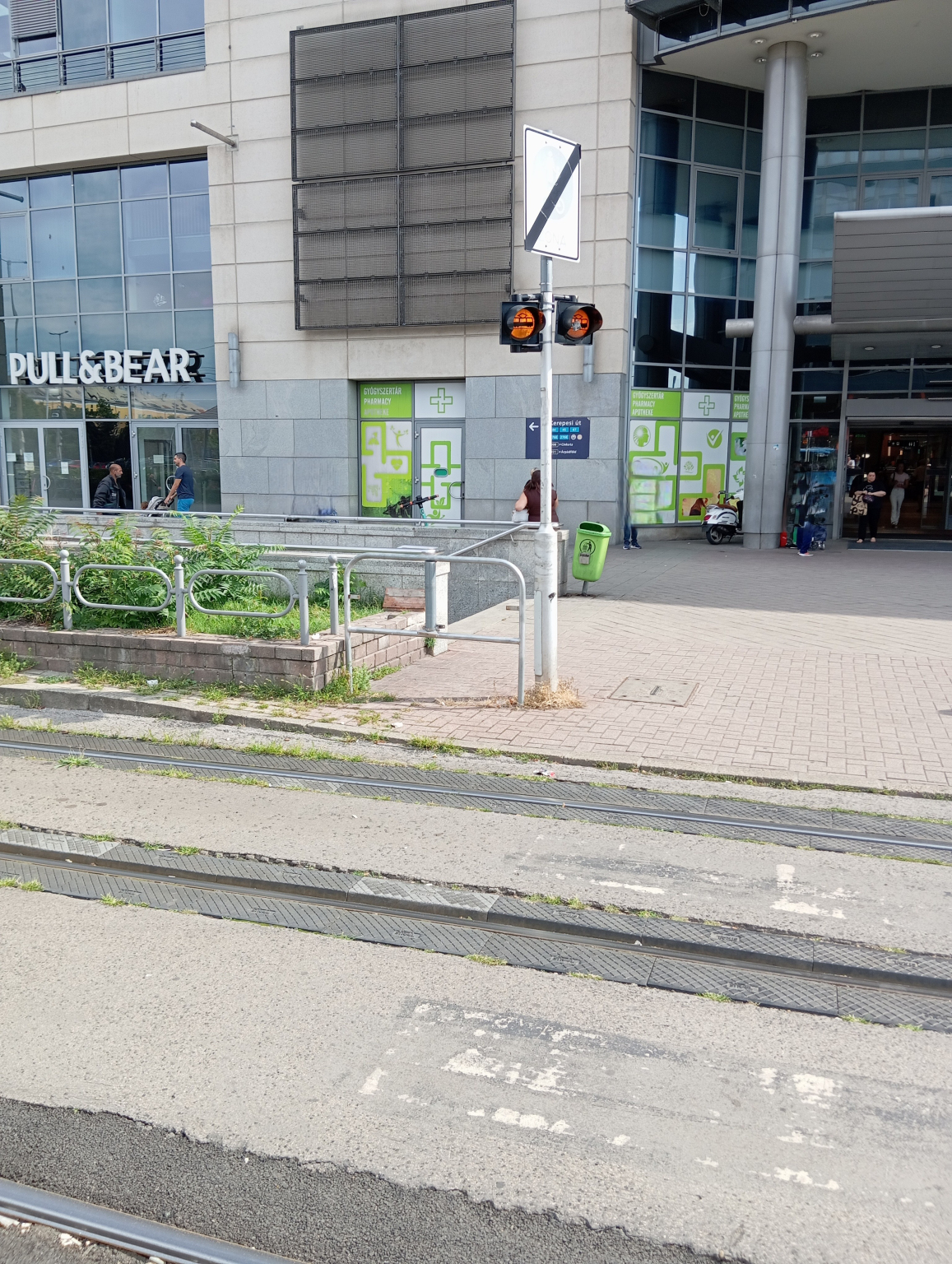 Kérem, legyenek szívesek cserélni a törött, és pótolni a hiányzó villamosközlekedésre figyelmeztető táblákat az Árkád előtti átjáróban! Köszönöm!