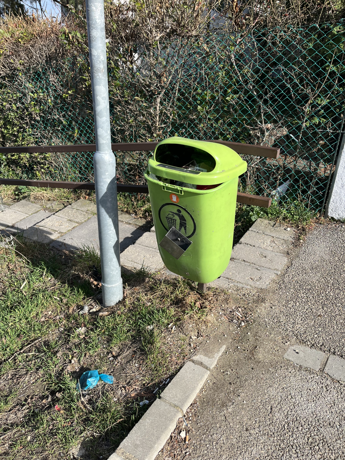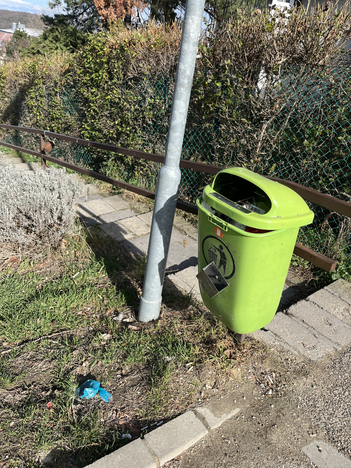 A csatolt fotón látható szemetes a környékbeli utcák egyetlen kukája, mely pár nap alatt megtelik, de nagyon ritkán ürítik. Sajnos akkor is kerül ‘bele’ hulladék, amikor már látszólag sem bírja, így az utca vége és az onnan tovább vezető lépcső melletti rész majdnem minden nap szemétben úszik.