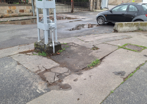 A képek magukért beszélnek, ember nagyságú gaz van konkrétan a megállóban és a villamos-vezető pihenő előtt.