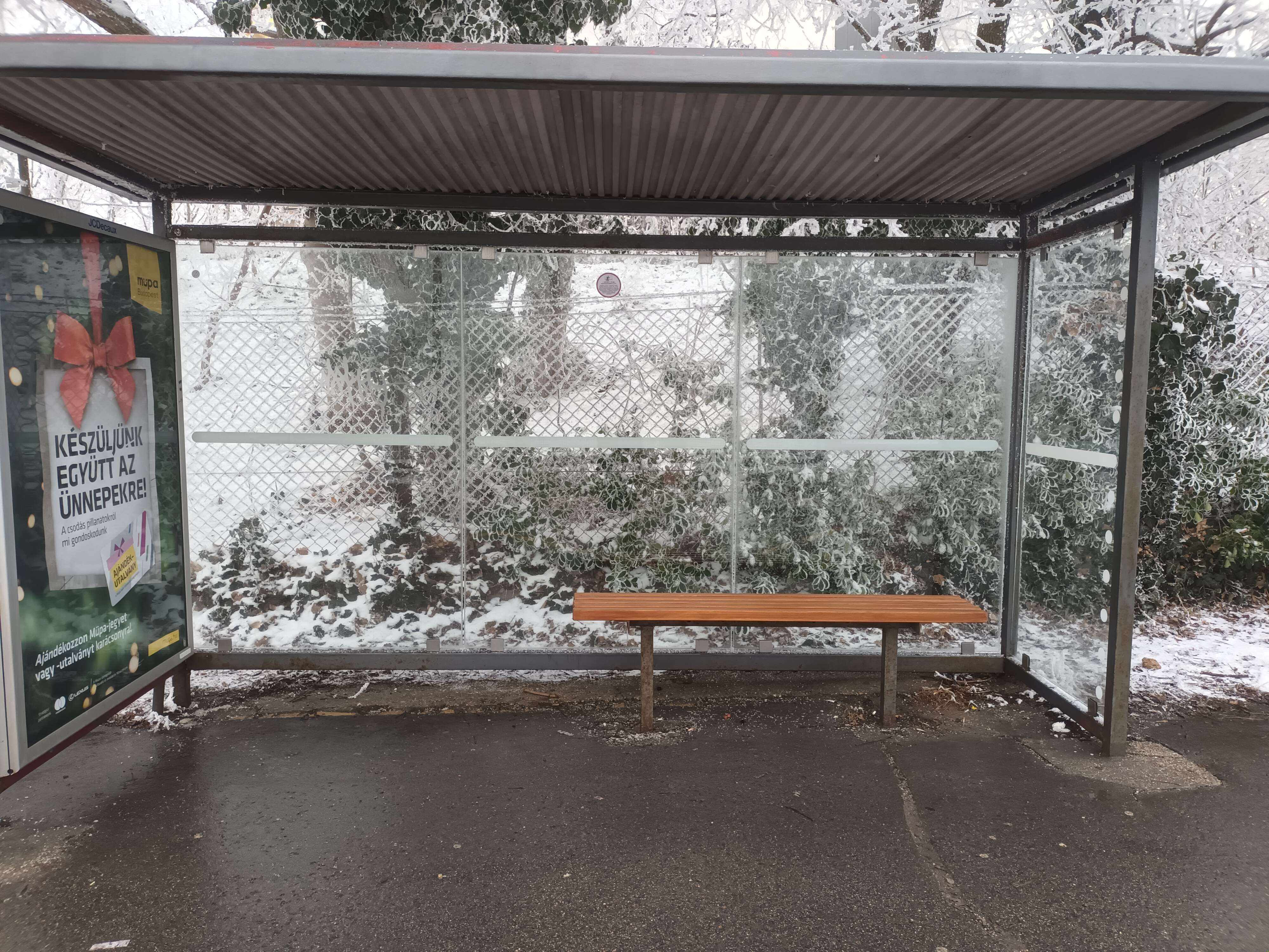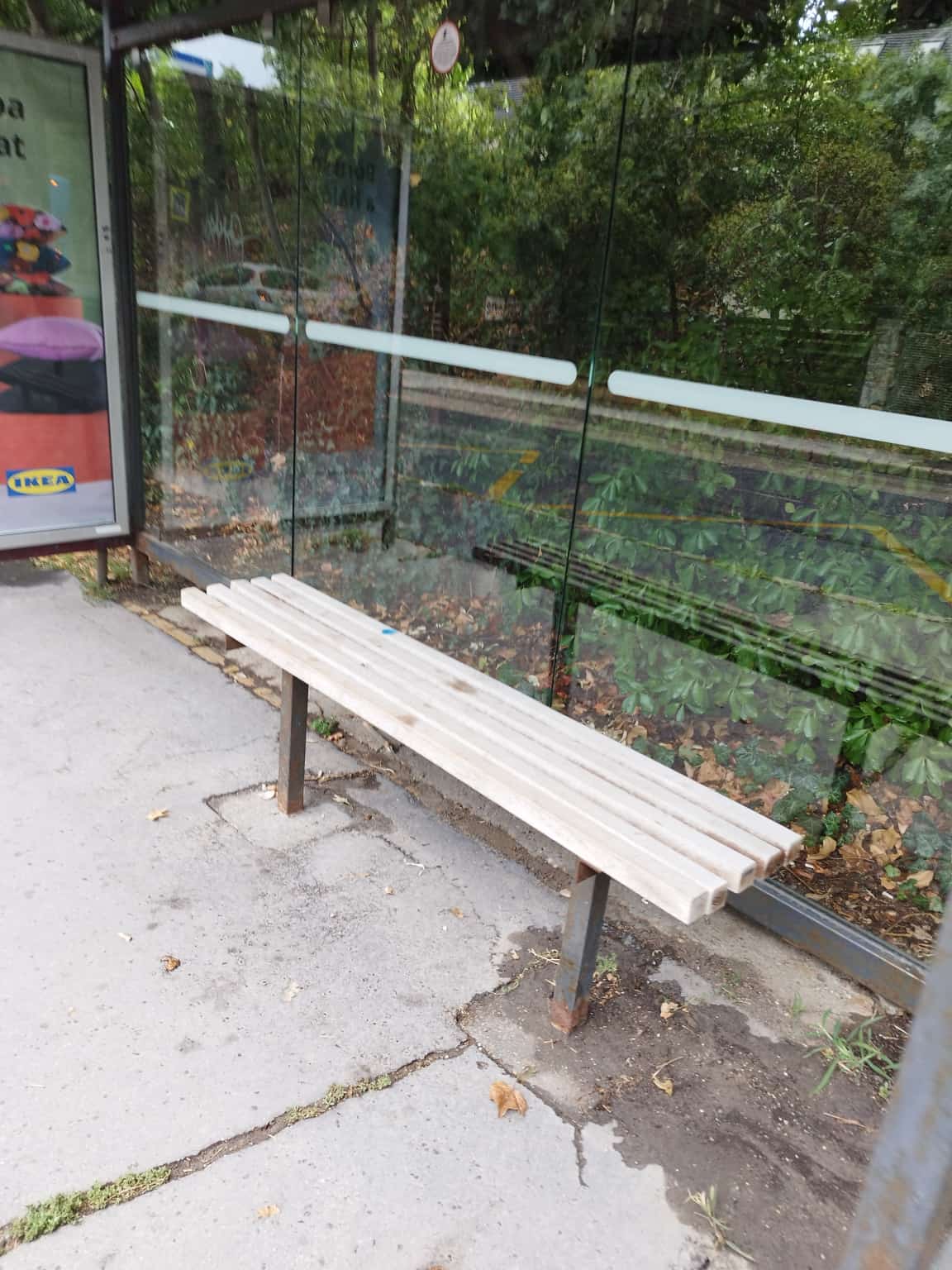 A Fülemile úti buszmegálló padja hófehér, lakkozatlan.