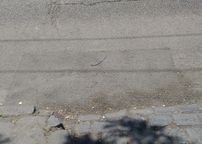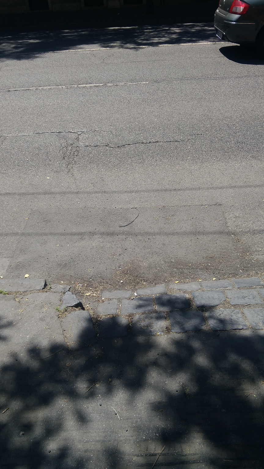 Kérem az illetékest, hogy tömjék be a képen látható lyukat az autó behajtó előtt!