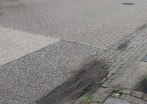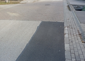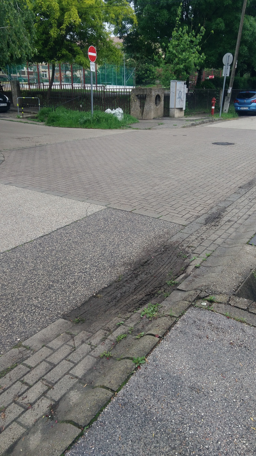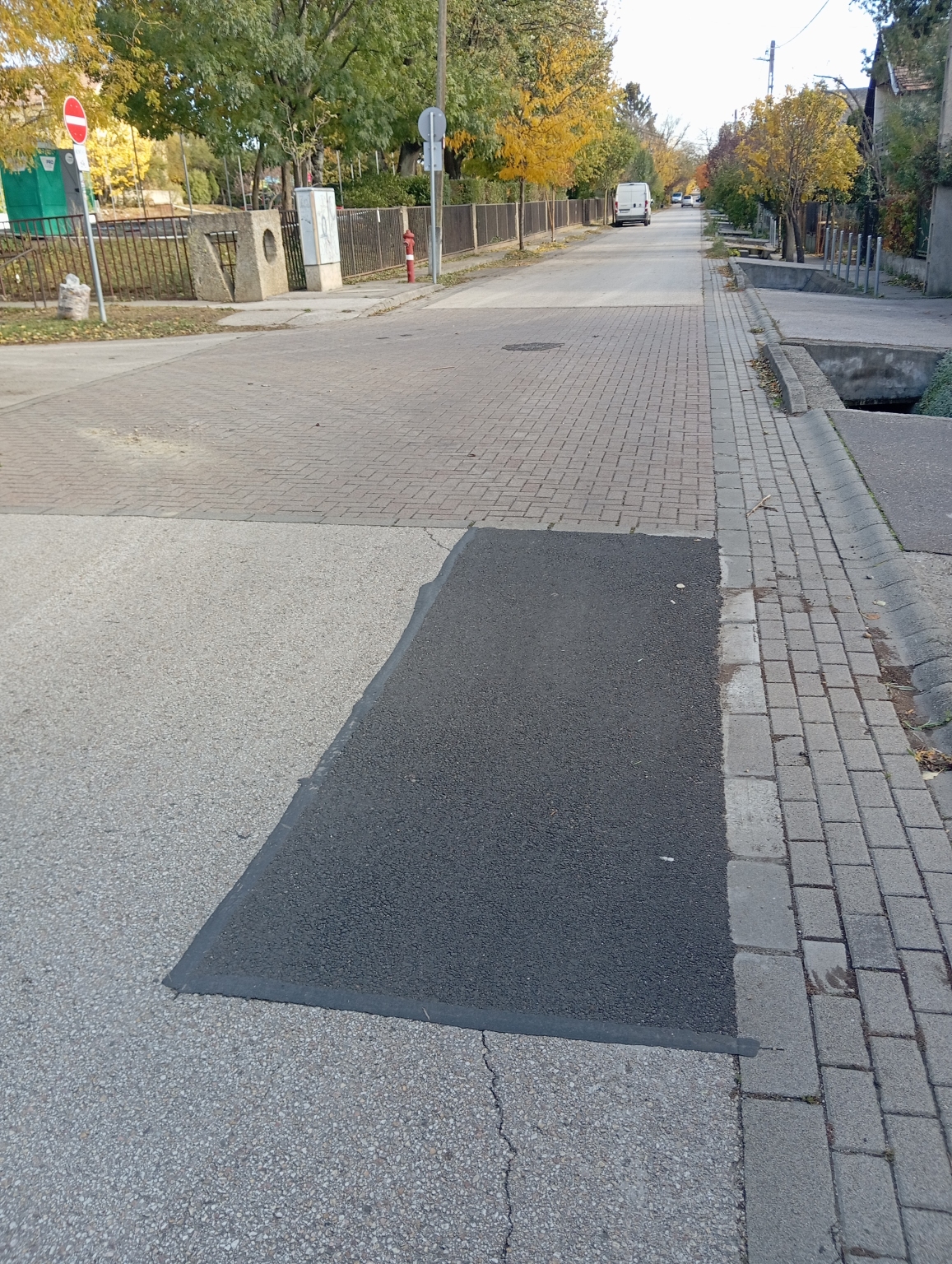 Kérem az illetékest, hogy a képen látható megsüllyedt aszfaltot állítsák helyre!