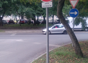 A jelzőtábla cseréjére a szükséges intézkedést megtettük, a megvalósulásig szíves türelmét kérjük.