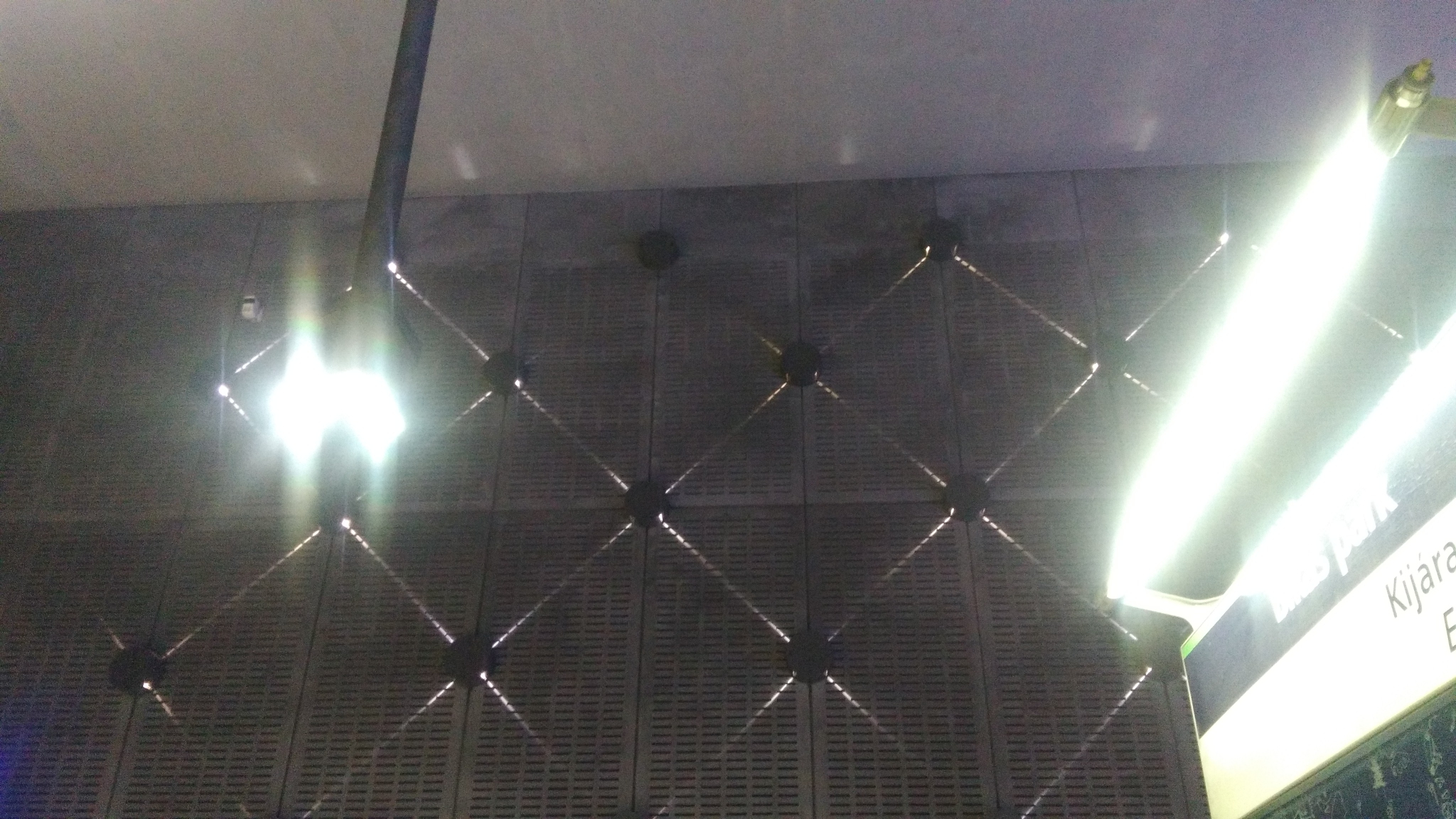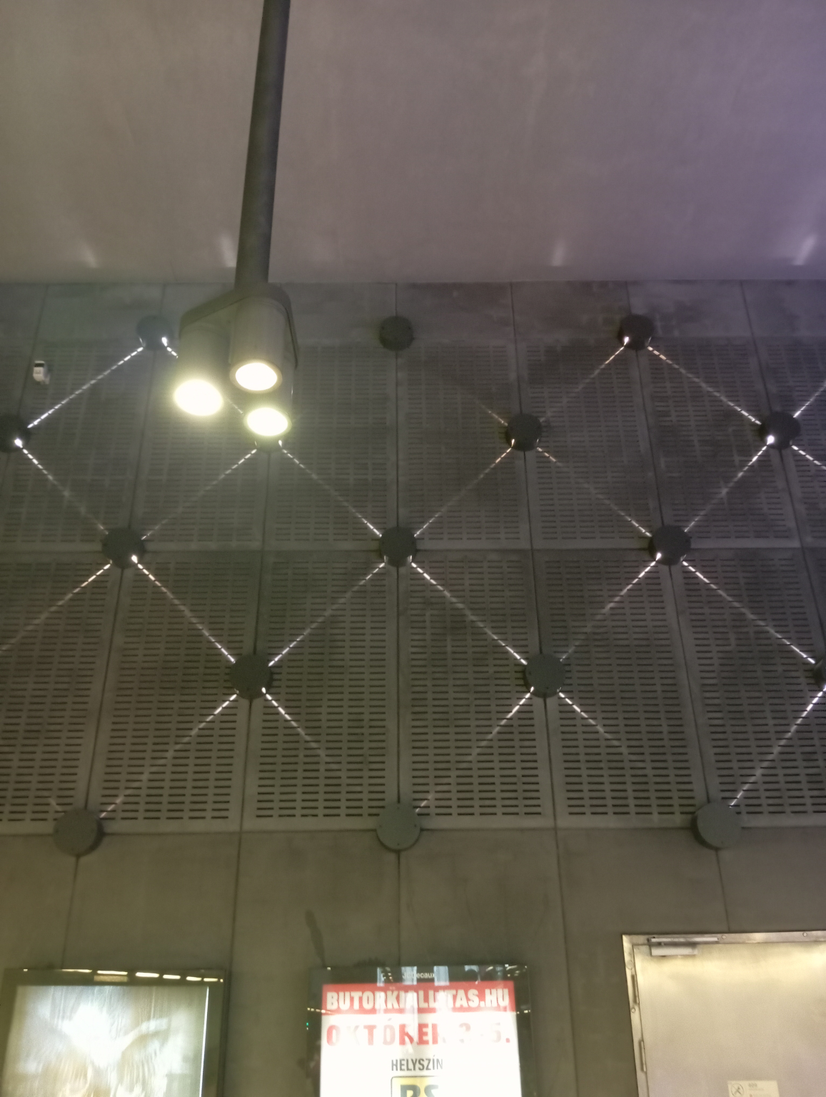 Kérem az illetékest, hogy cseréljék ki a kiégett világítótestet a képen látható helyen (Bikás park metrómegálló, a két peron között)!