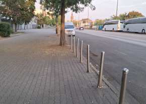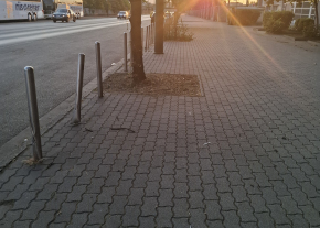 A képen látható pollereket kérem cseréljék, balesetveszélyesek.