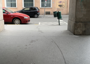 A képen látható helyen, a volt Otthon áruház előtt gyakori, hogy a járdára felhajtva parkolnak személyautóval. 1-2 oszlop elhelyezésével ez megakadályozható lenne.