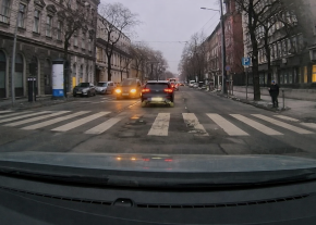 Buszmegálló előtti kátyú