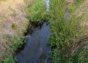 Az Ilosvai Selymes térnél és feljebb is a Rákospatak partja gazos, fakinövések vannak mindkét oldalon. A patakmeder nem tisztított, szemetes, hínáros, a kacsák már úszni sem tudnak benne.