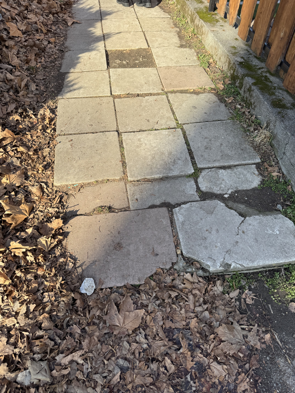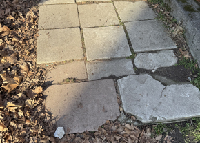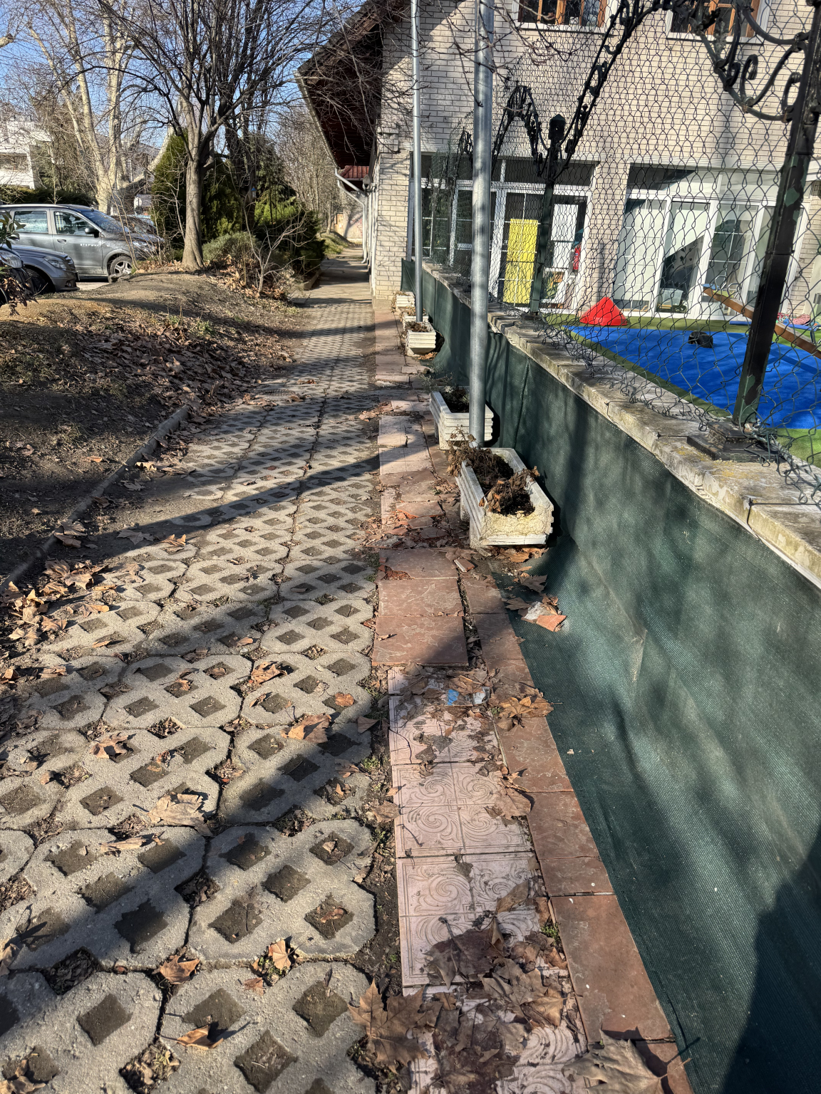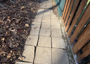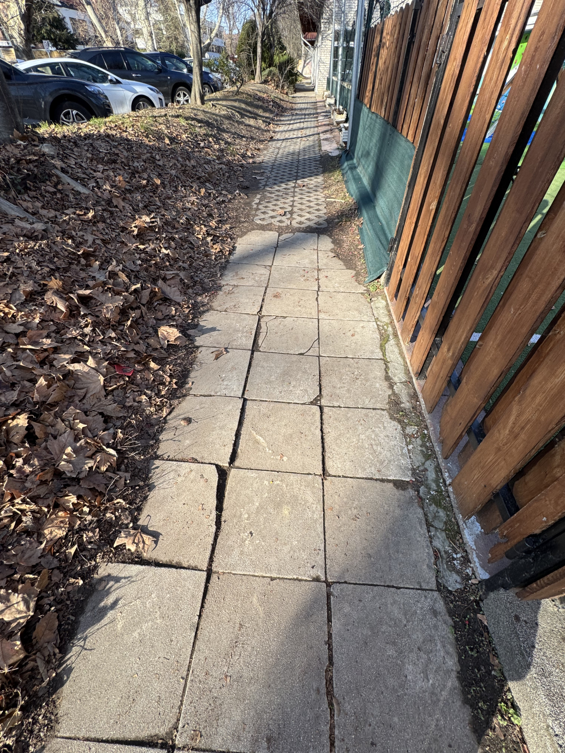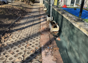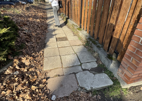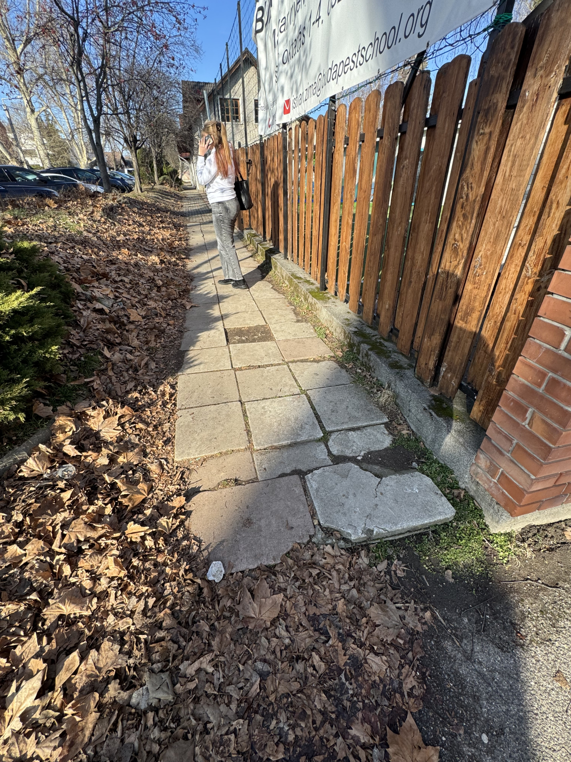 A Budapest, III. Kerület Nánási út 97. szám alatt ahol egy iskola is működik rossz minőségű és veszélyes a járda.