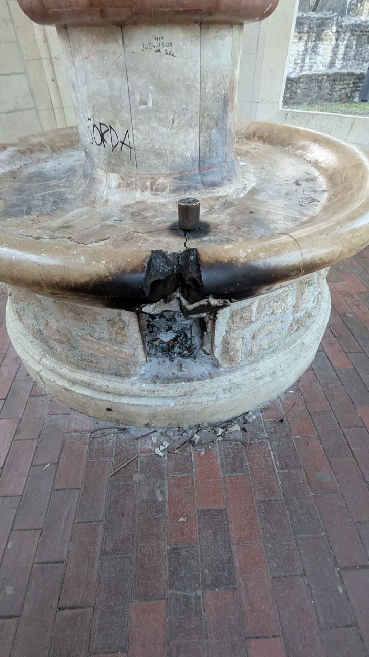 Vandálok megrongálták a szökőkutat, kérem, javítsák meg.