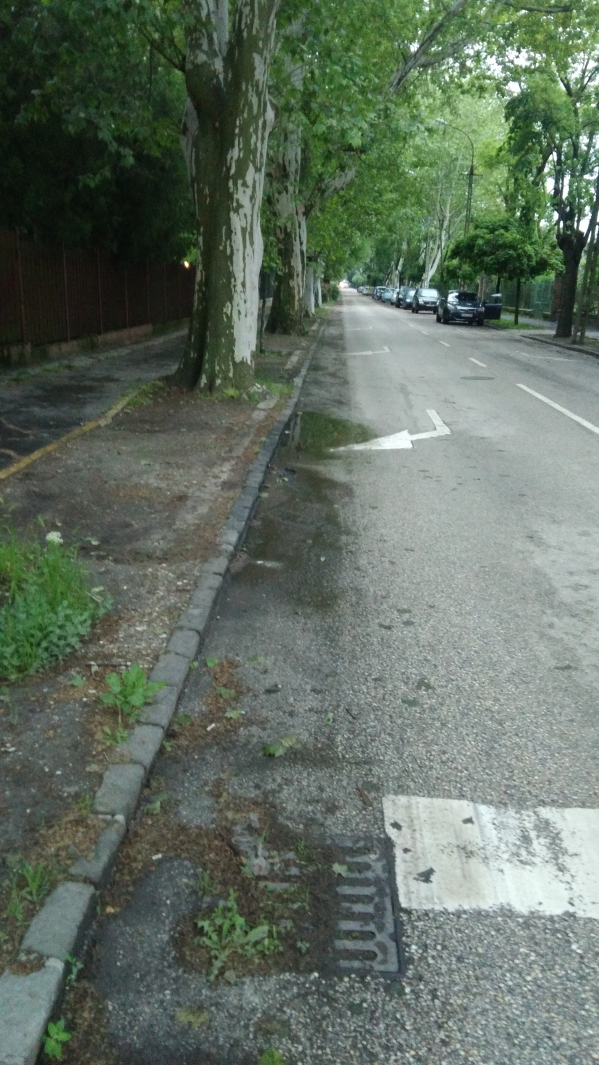 Kérem az illetékest, hogy a Pilóta utca teljes hosszában az eldugult rácsokat kipucolni szíveskedjen!